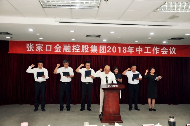 7月27日,张家口金融控股集团有限公司2018年中工作会议隆重召开,集团总裁东小杰出席会议并作工作总结,集团副董事长昝杰亮、副总裁韩开全、潘侠、高雪雁、张伟伟、首席风控官顾元燊出席会议,全体员工参加会议。会议由高雪雁副总裁主持。