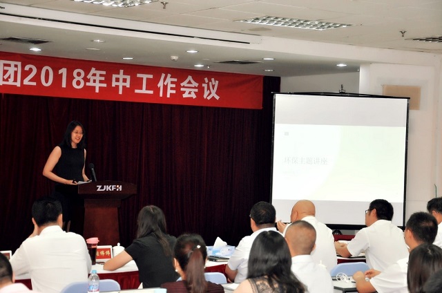在经过短暂的会间休息后,会议第三项议程“环保,我们能做些什么”主题讲座拉开序幕。总裁助理栾婷婷介绍了金控集团与中美绿色基金共同发起设立河北省华美绿色环保基金会的相关情况。目前,河北省华美绿色环保基金会已先后开发了“零废弃进课堂”、“零废弃进企业”等特色环保教育课程,并在云南勐库中心小学,北京康乐里小学、天通苑学校以及张家口金鹰小学和经开区第三小学等多地进行了多轮宣讲展示活动。此外,栾婷婷还列举了日常生活中力所能及的环保小举措,倡导大家从每一次微小的改变开始,提高环保意识,减少垃圾的产生,珍惜环境,善待未来。最后,全体参会人员合影留念,大会圆满结束。
