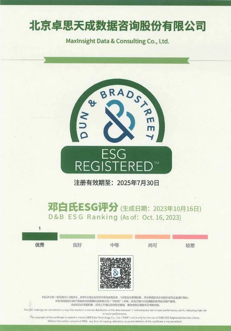 近日,张家口金融控股集团有限公司(简称:张家口金控)被投企业——国内头部CEM客户体验管理平台北京卓思天成数据咨询股份有限公司(简称:卓思)凭借在环境治理、社会责任及公司治理等方面的出色表现,通过邓白氏ESG认证,并获“优秀”最高评级,成为公司践行ESG斩获的又一成果认可。