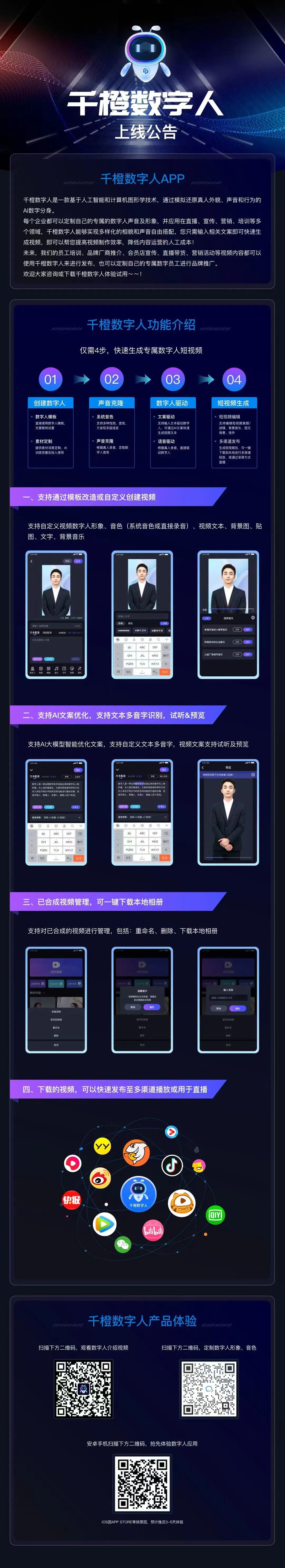 据悉,“千橙数字人”是基于人工智能和计算机图形学技术,通过模拟还原真人外貌、声音和行为制作的AI数字分身。