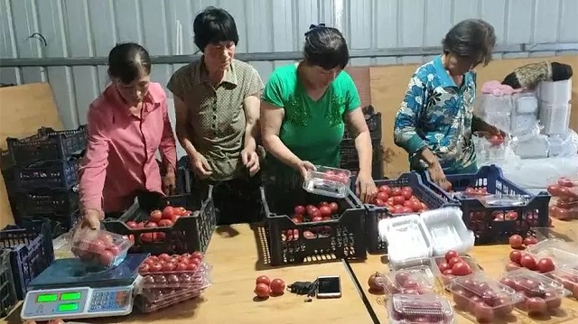 凌晨四点,天光微亮,经过近五个小时的长途运输,一辆辆满载着新鲜蔬果的货车驶入扶贫农业基地位于北京的配送中心,在这里,这些蔬果将被分运至各处。自从基地利用生态技术培育的高甜度精品番茄迎来了丰收,安雅庆就逐渐适应了这种黑白颠倒的时差。下午,安雅庆组织工人们将刚从大棚里采摘回来的新鲜番茄分拣,并用防潮纸包好装箱,傍晚再随车从赤城出发,凌晨四点左右正好到达北京,白天还能赶上跟前来接货的对接方交流近期市场拓展情况。