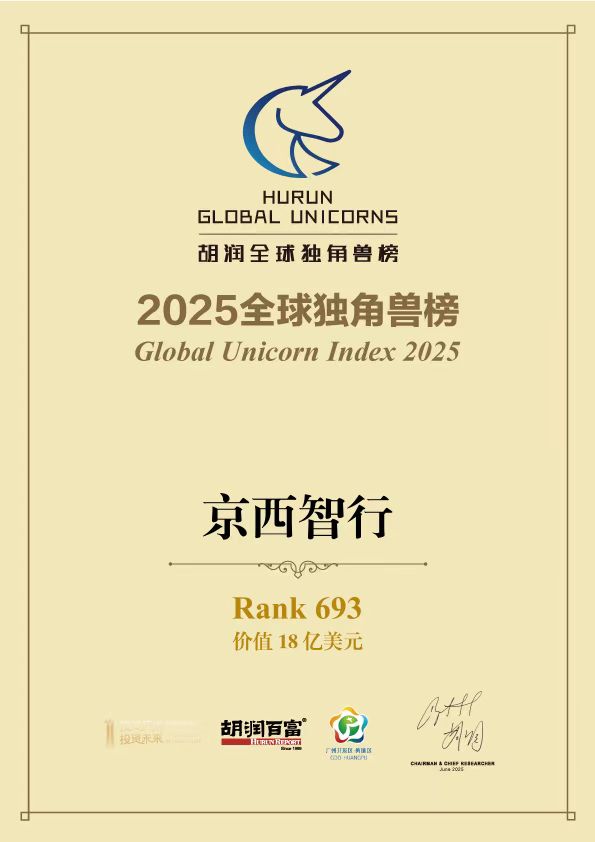 2025年6月26日,胡润研究院发布《2025全球独角兽榜》(Global Unicorn Index 2025),列出了全球成立于2000年之后,价值10亿美元以上的非上市公司。张家口产业投资控股集团(简称:张家口产投)控股企业——京西智行作为国际化汽车零部件企业再度上榜,估值约130亿元人民币,位列全球693位,延续其在智能汽车底盘供应链的领先地位。