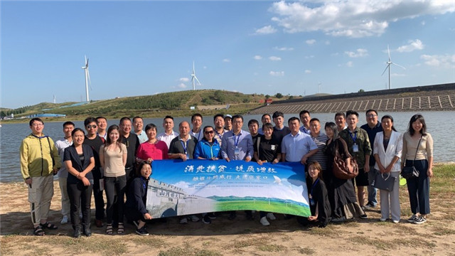 “扶贫助威团”成员与张家口市扶贫领导在尚义县鸳鸯湖国际露营公园合影留念